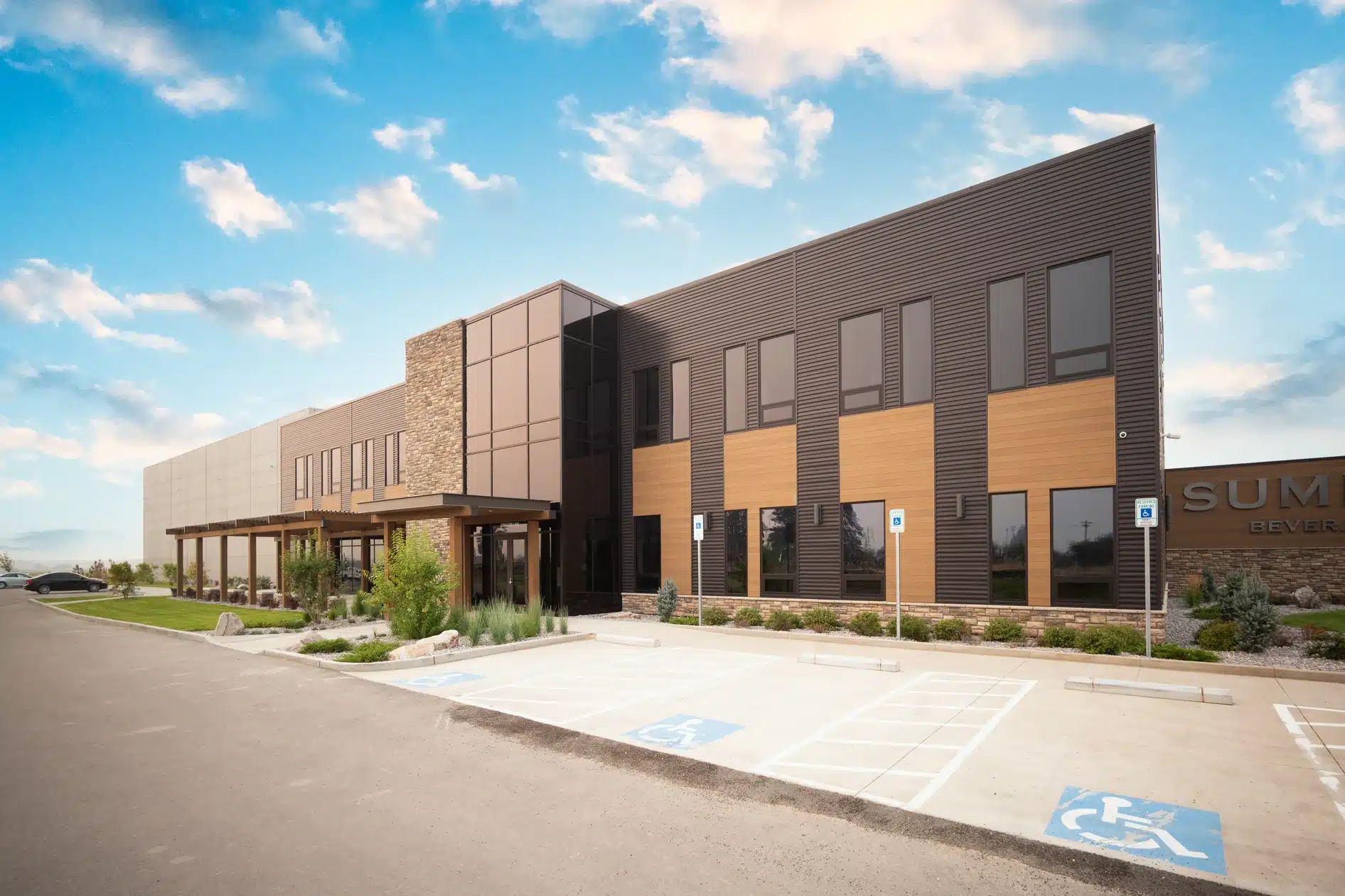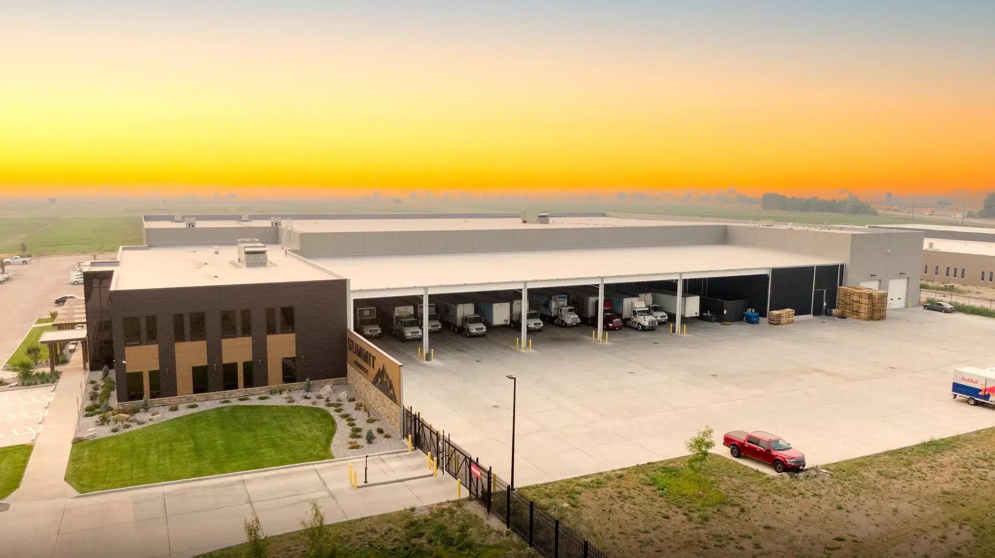 HDA partnered with Summit Beverage to deliver a state-of-the-art beverage distribution facility in Missoula, Montana. The project, spanning an impressive 114,295 square feet, seamlessly integrates a 20,600-square-foot office space with a 93,695-square-foot warehouse. This facility was designed to support Summit Beverage’s operations, combining efficiency, functionality, and modern design.