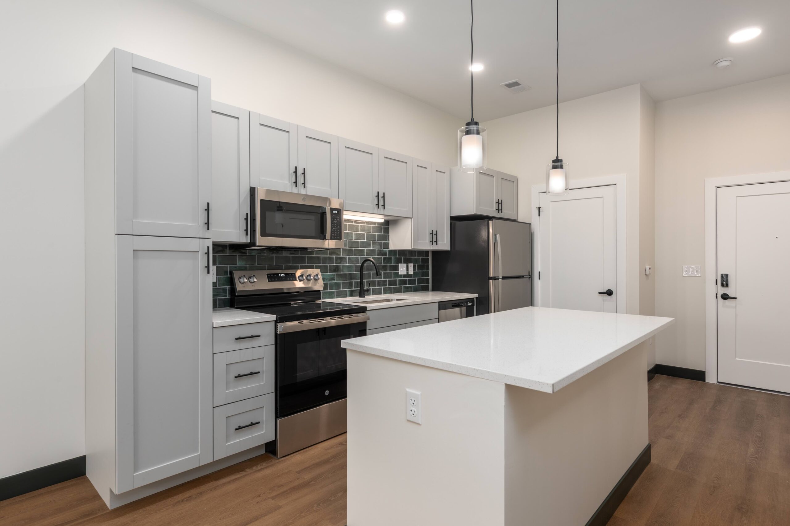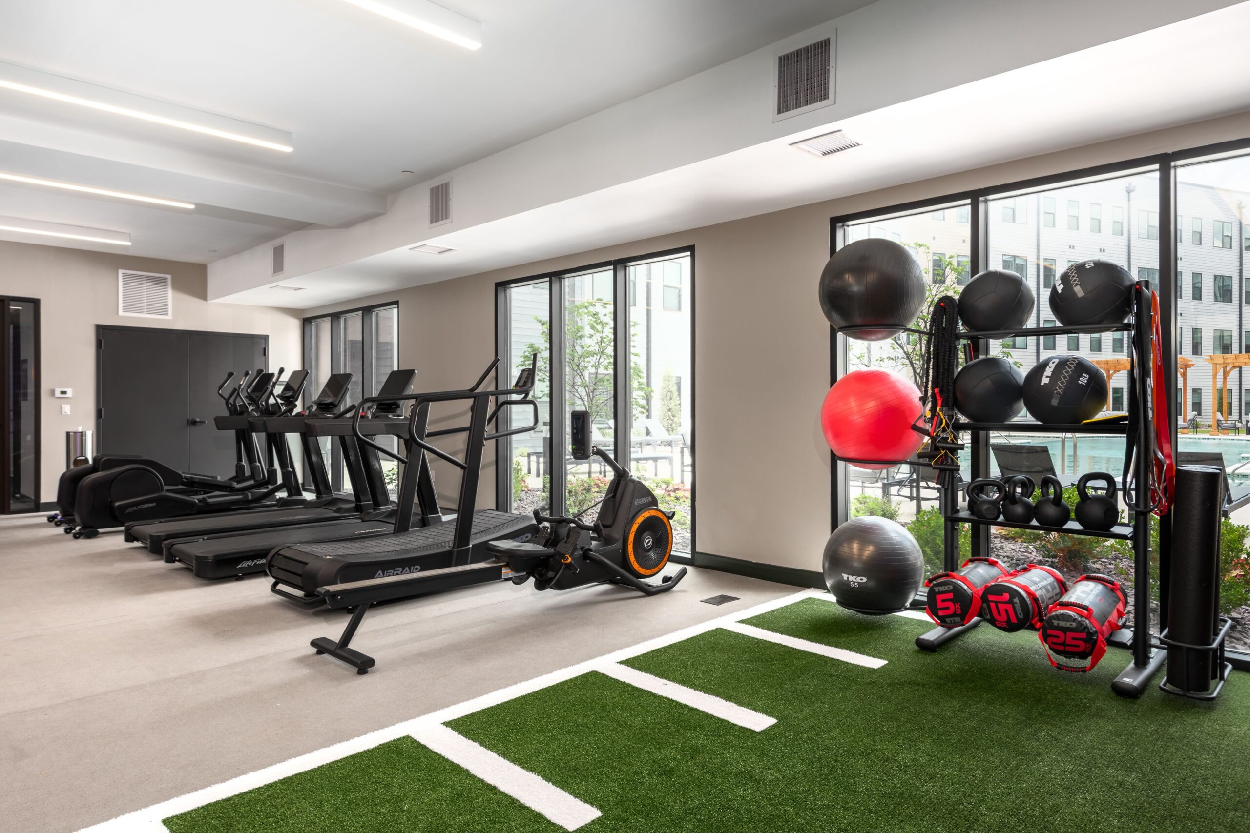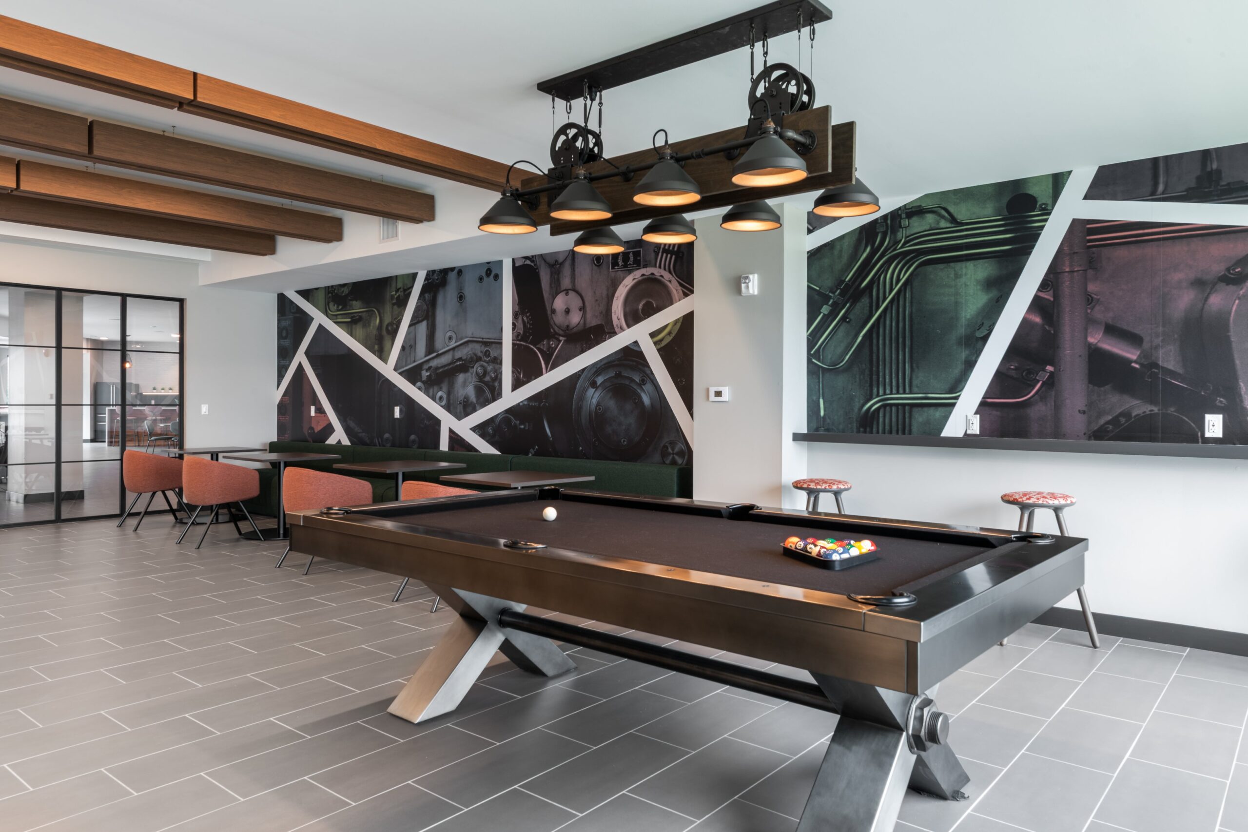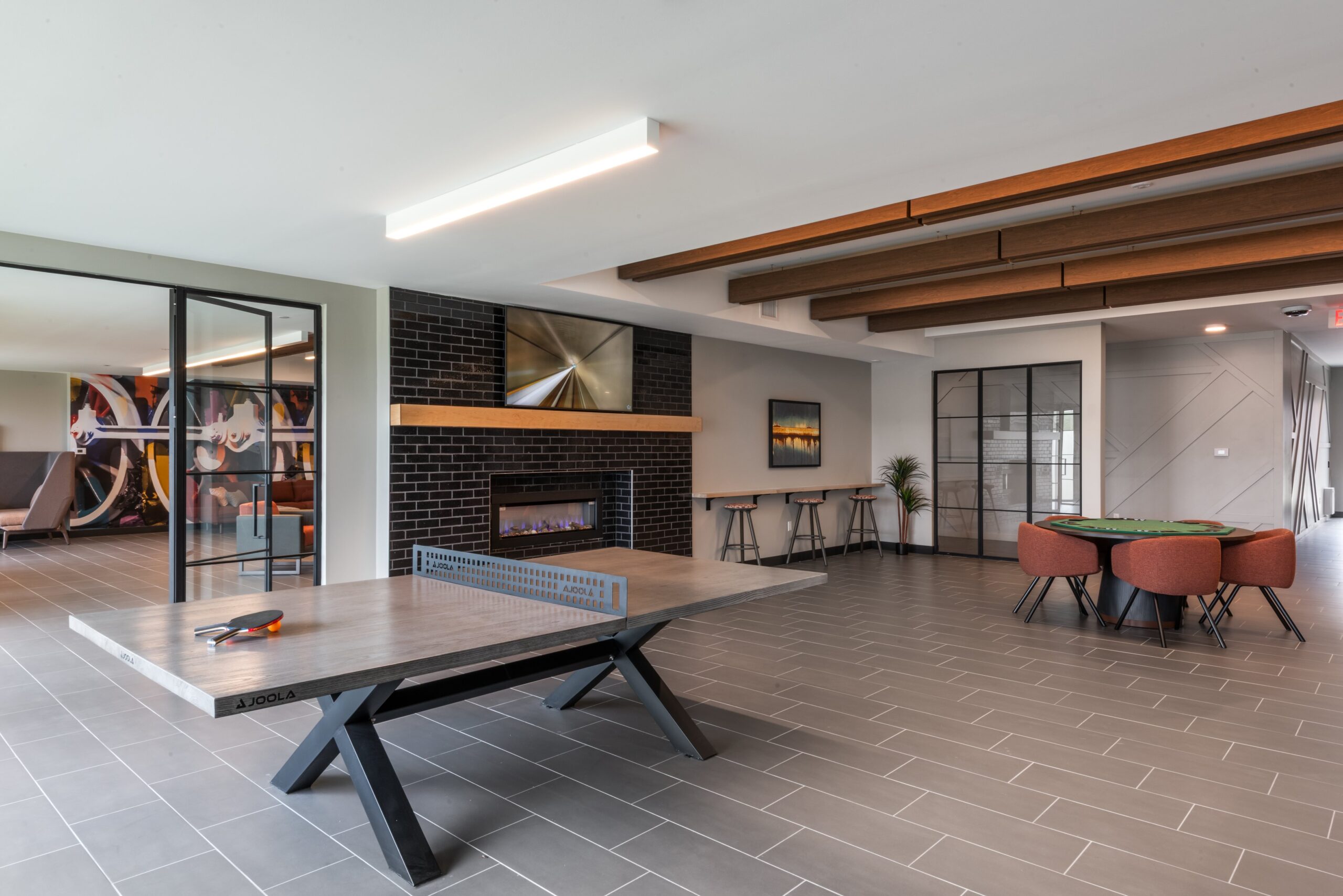 The Rail offers an impressive array of amenities for modern living, including an outdoor courtyard with a pool and grilling area, a fitness center with group class capabilities, a game lounge, a theater, and a gathering kitchen. Additionally, remote workers benefit from dedicated office and conference spaces, fostering productivity and convenience.